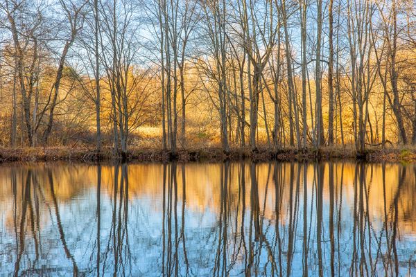 Sunset reflection in one of the many wooded ponds in Hoffman Park, near Pittstown, in Hunterdon County, NJ.