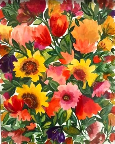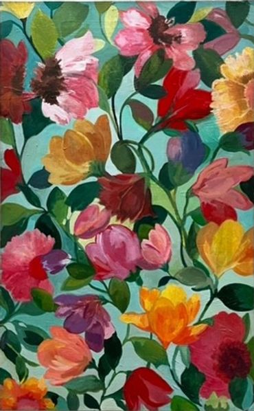 "For the past four decades, and all of my life, I’ve been drawn to painting flowers and gardens in vivid colors. My early career and foundation as a serious, classically trained flutist made me aware of not only my love of harmony, but composing as well.