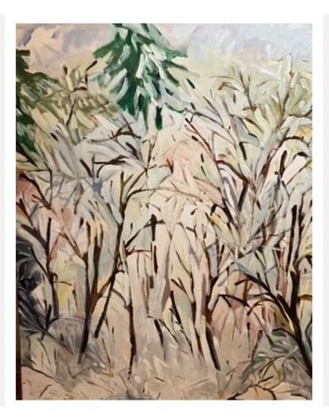 This past summer and Fall I discovered the beautiful zinnia and sunflower fields of the New Jersey Highlands that inspired a new series of floral paintings and tranquil, snow- covered woods. After four decades living and designing in NYC and recently relocating to The Highlands, I am discovering the rural beauty of this region and I feel it is reminiscent of a pastorale Mahler symphony.
